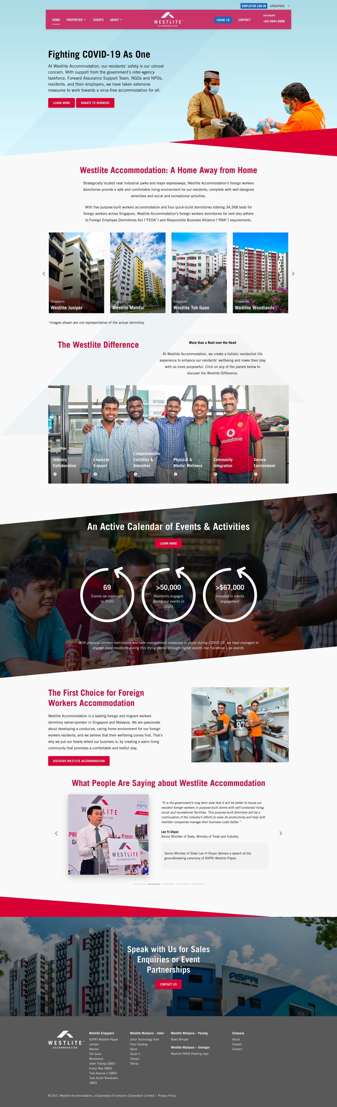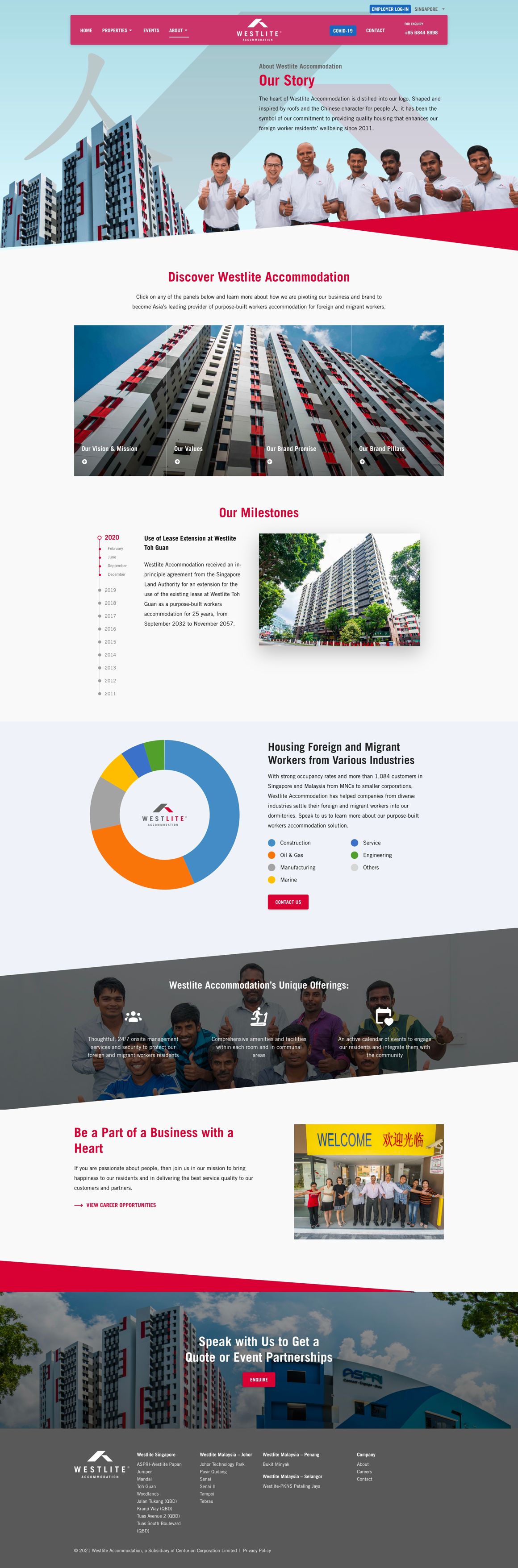 Westlite Accomodation is a leading foreign and migrant workers dormitory owner-operator in Singapore and Malaysia. The website is redesigned to give it a face lift that best reflects its brand identity. A more intuitive user interface was developed on the frontend, allowing web visitors to navigate the contents with a smoother user experience, while enabling easy content management on the backend panel.